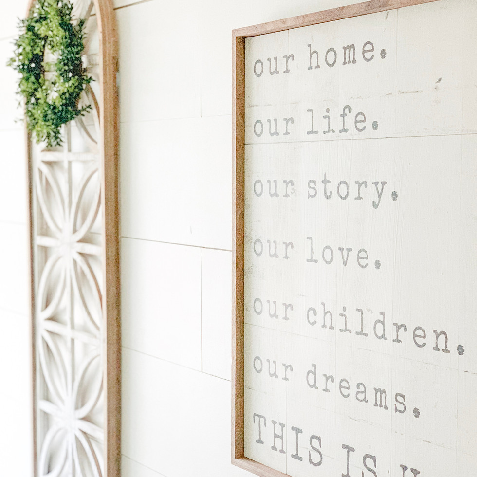 A few weeks ago I shared a time-lapse video of my husband and I installing a shiplap wall in our kitchen. I stared at this blank expanse of wall in my kitchen for over a year, adding pictures and seasonal decor to try and bring it to life but nothing worked! Finally, I got the inspiration to add shiplap from an episode of ‘Fixer Upper’ on HGTV.
